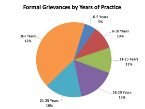 The largest number of grievances received were against lawyers who have been in practice for 26 years or more.